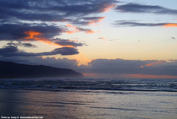 水平線の雲の中に沈んで行った太陽の光が、アヴァランチに上がった波で煙っていた。